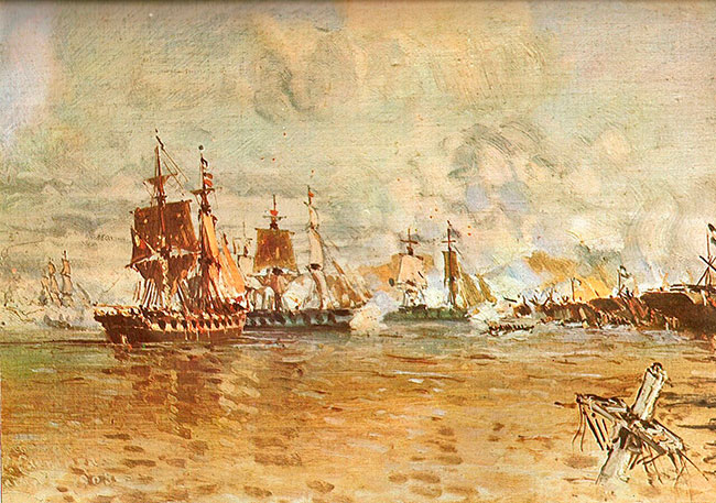 El 20 de noviembre de 1845, en un estrecho del río Paraná conocido como Vuelta de Obligado, las tropas argentinas comandadas por el general Lucio Mansilla montaron una defensa impensada para la época. Colocaron tres gruesas cadenas de costa a costa, reforzadas por barcazas y baterías. Frente a ellos, las naves anglo-francesas contaban con artillería de última tecnología y un poder de fuego muy superior.