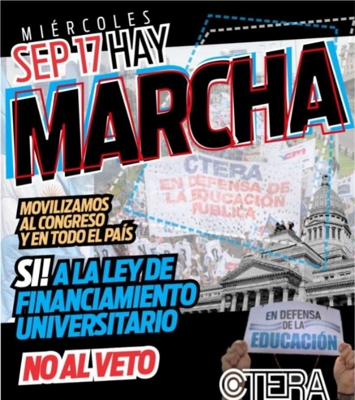 En ese marco, CTERA anunció una Jornada Nacional de Lucha para el 17 de septiembre, con una movilización central al Congreso de la Nación y acciones en todo el país.