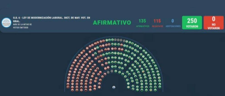 En una jornada marcada por un paro general y una fuerte tensión política, la Cámara de Diputados de Argentina aprobó con cambios el proyecto de reforma laboral impulsado por el Gobierno de Javier Milei. Con 135 votos a favor y 115 en contra, la iniciativa regresa ahora al Senado para su sanción definitiva, debido a una modificación de último momento.