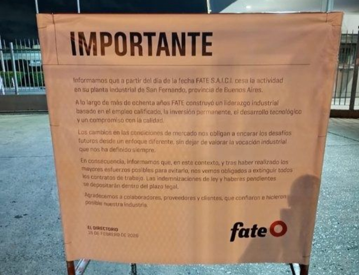 La postal del amanecer en San Fernando no fue la del habitual cambio de turno, sino la de un muro policial y un cartel frío que clausuró ocho décadas de historia. Fate, el gigante de los neumáticos y símbolo de la burguesía industrial argentina, anunció este miércoles su cierre definitivo y la liquidación de sus activos, dejando en la calle a 920 trabajadores.