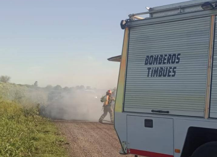 Un automóvil quedó envuelto en llamas al incendiarse mientras circulaba sobre calle colectora de la localidad de Timbúes.