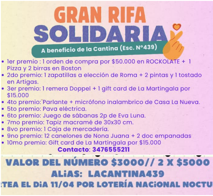 NOTA: Quien quiera colaborar comprando un número para el sorteo puede comunicarse con Paola al 3476-555211.