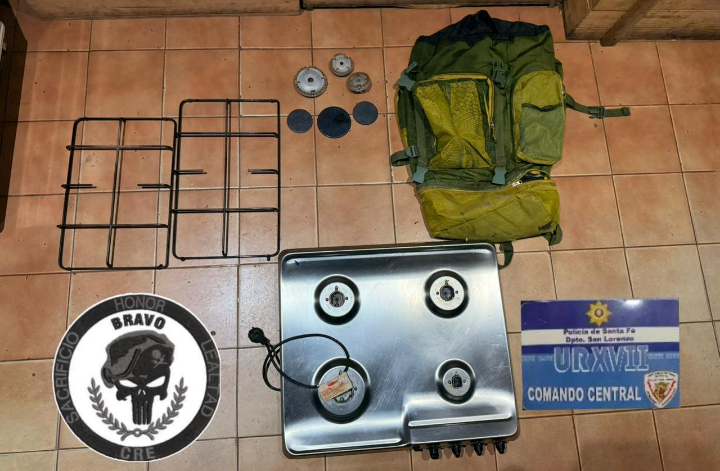 Ante esta situación, el personal detuvo la marcha y solicitó apoyo operativo. Tras un rastrillaje en un terreno baldío cercano, los refuerzos localizaron una caja marrón que contenía un anafe gris, dos parrillas, tres hornallas y una mochila.