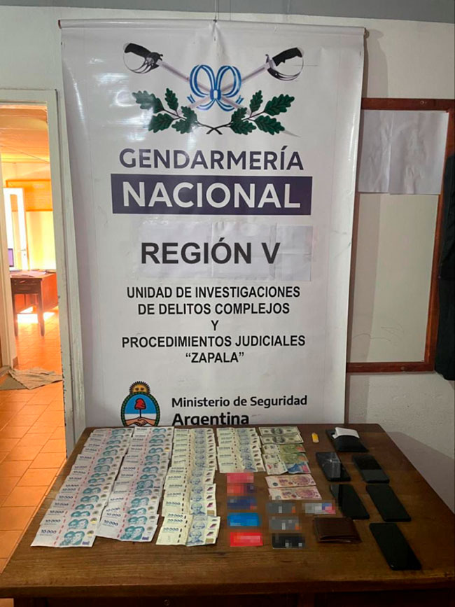 Efectivos de los Escuadrones 68 "Comahue", 32 “Aluminé” y 31 Las Lajas “Gendarme Juan Carlos Treppo” como así también la Unidad de Investigaciones de Delitos Complejos y Procedimientos Judiciales “Neuquén” recepcionaron los oficios judiciales se desplegaron hacia los inmuebles, donde secuestraron 293 paquetes y cigarrillos electrónicos, 25 celulares, un vehículo, prendas de vestir, mercadería rubro electrónica, 46 municiones, 13 gramos de cocaína y cuadernos con anotaciones (importantes para la causa).