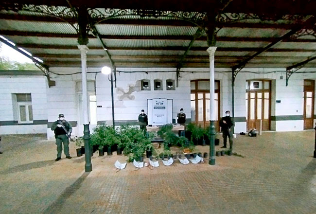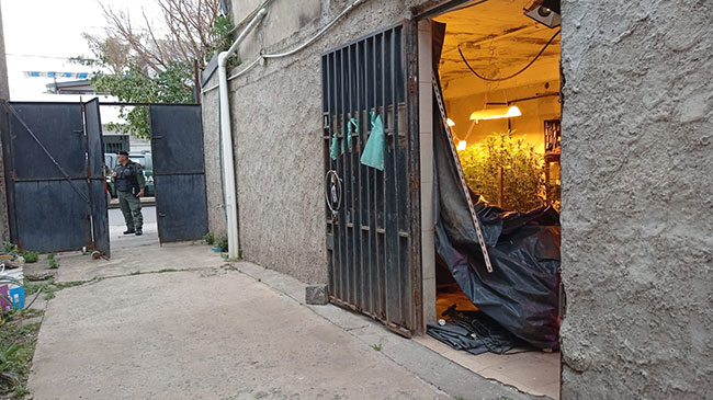 Los funcionarios notaron la presencia del cultivo de 185 plantas de "cannabis sativa" y una conexión de luz artificial en el momento en el que pasaron por la vereda de una vivienda. Inmediatamente, los uniformados solicitaron una orden de allanamiento y procedieron a realizar el registro del domicilio, donde encontraron tres armas de fuego (dos revólveres calibre .38 mm y una escopeta calibre 16 mm), municiones, un medidor adulterado con conexión irregular de alumbrado, teléfonos celulares y dinero en efectivo. Los propietarios del inmueble, quienes manifestaron que contaban con la habilitación de REPROCANN para nueve plantas, quedaron detenidos.