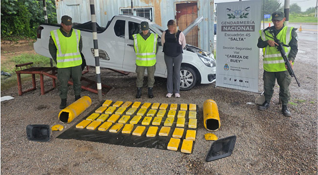 En Salta detuvieron a una ciudadana que conducía una camioneta con un cargamento oculto de 44 kilos de cocaína.