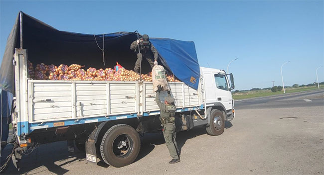 Ayer, los efectivos de la Sección Seguridad Vial “Totoras” dependiente del Escuadrón 46 “Rosario” desplegados sobre el kilómetro 58 de la Ruta Nacional N° 34, detuvieron la marcha de un camión con su semirremolque, en el que trasladaban un cargamento de cebollas.