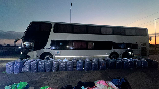 Consecuentemente, se procedió a tomar contacto con Magistrado interviniente, que dispuso el labrado de actuaciones, secuestro de la totalidad de los bultos, del ómnibus, como así también, la aprehensión de dos ciudadanos involucrados.
