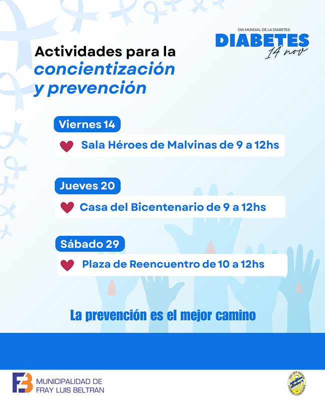 En el marco del Día Mundial de la Diabetes, la Municipalidad de Fray Luis Beltrán impulsa una serie de jornadas de concientización, prevención y detección temprana, abiertas a toda la comunidad.