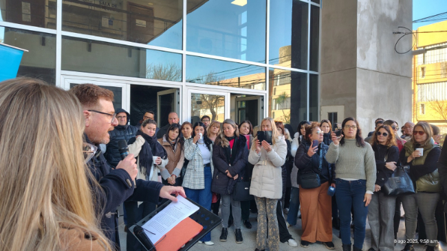 Durante la manifestación, el abogado Daniel Giordana leyó un extenso documento petitorio en el que enumeró las problemáticas que, aseguran, afectan gravemente el funcionamiento de la justicia local.