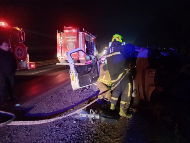 Para su rescate, se procedió a retirar el suministro eléctrico del vehículo y se realizaron tareas de corte y expansión de puertas y techo utilizando herramientas hidráulicas y batería, logrando la extracción y posterior inmovilización de los heridos.