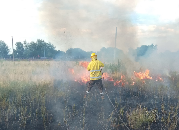 Efectivos de la Agrupación Bomberos Zapadores de San Lorenzo intervino este martes por la tarde en un incendio de pastizales registrado en un terreno baldío ubicado en la intersección de las calles Falucho y Vega, de esta ciudad.