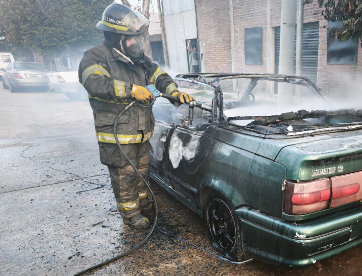 Nuevamente en la intersección de las calles Suiza y Alberdi, los Bomberos Zapadores debieron intervenir para sofocar las llamas en un vehículo que ya había sido blanco del fuego el pasado 26 de febrero.