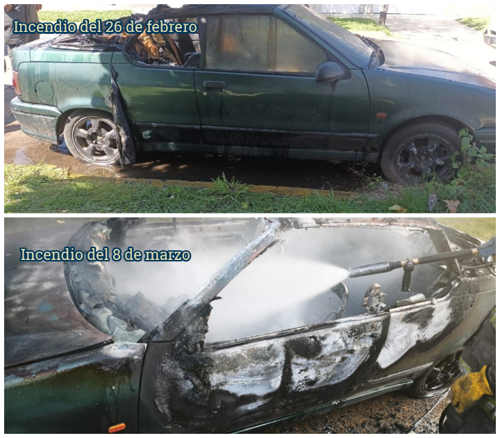 El primer registro data del pasado 26 de febrero. Cerca de las 10.45 hs, personal de la Agrupación de Bomberos Zapadores de San Lorenzo fue convocado a calle Suiza al 500. En aquel momento, un Renault 19 Cabriolet presentaba fuego en su habitáculo. El propio dueño intentaba contener el foco ígneo cuando llegaron los efectivos, quienes finalizaron la extinción. Los daños fueron importantes: afectaron el interior, el techo y los cristales.