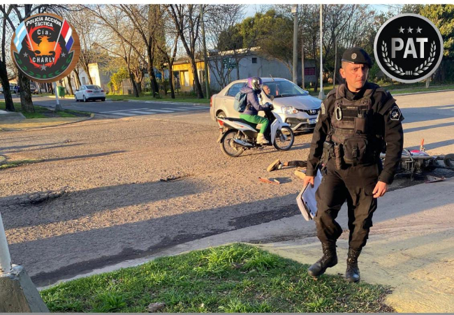 Según informaron fuentes oficiales, el procedimiento se inició minutos después de las seis de la tarde del lunes, cuando los agentes patrullaban la zona de Paraguay y Ruta S18. Allí detectaron a un motociclista que circulaba a alta velocidad en una Honda CG 150 cc de color rojo, sin casco reglamentario ni patente visible, y realizando maniobras peligrosas.