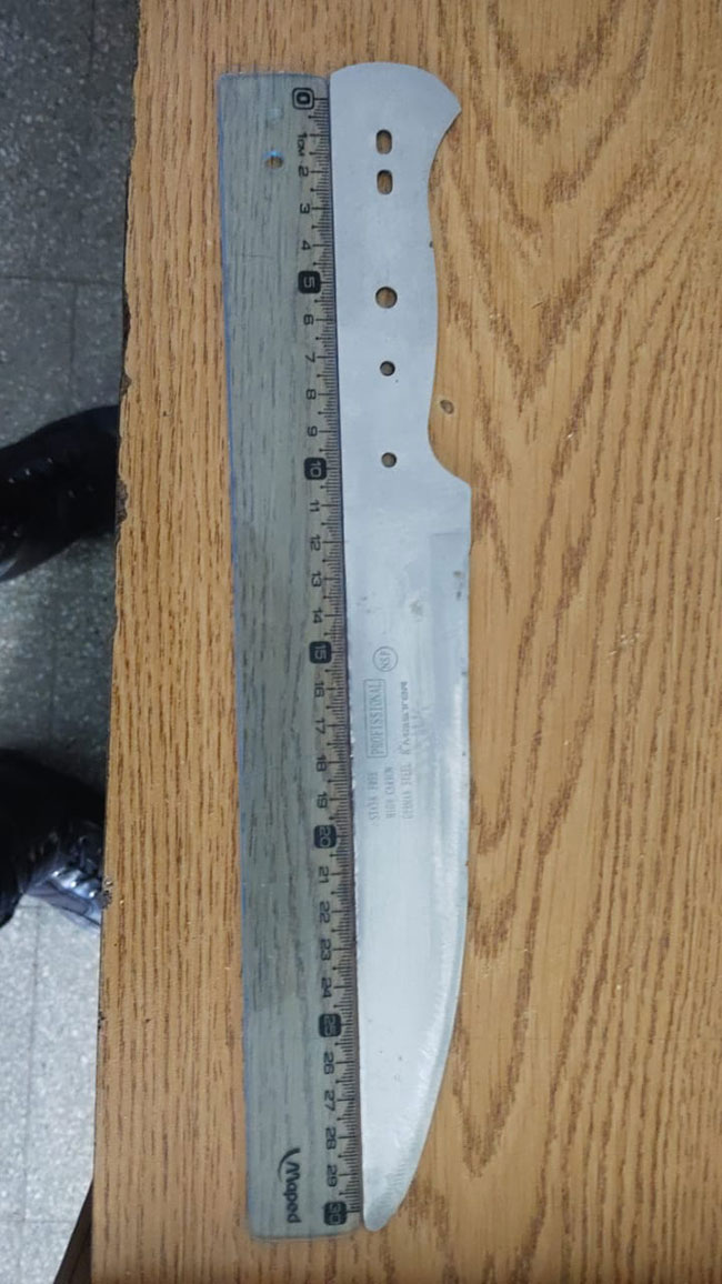 Ante la sospecha, los uniformados procedieron a realizar una requisa palpárea de urgencia. La búsqueda arrojó un resultado positivo: el sujeto llevaba oculto en la cintura, entre sus prendas, un cuchillo tipo carnicero sin mango, con una hoja de aproximadamente 30 centímetros de longitud.
