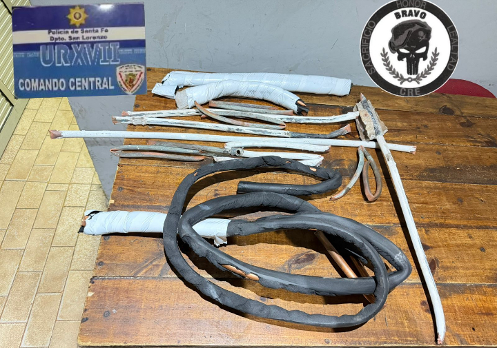 Tras interceptar al sujeto e identificarlo como Mauro P., de 34 años, los uniformados constataron que los elementos descartados eran tramos de cañería de cobre de distintas medidas, material con valor de reventa en el mercado ilegal.