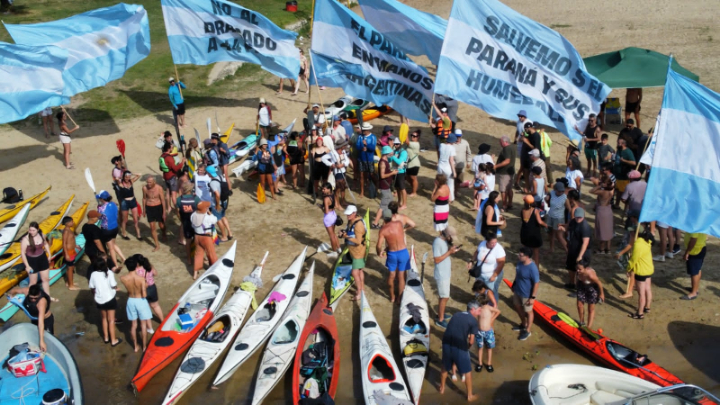 La iniciativa, impulsada por el Foro por la Recuperación del Paraná junto a un amplio arco de organizaciones ambientales, sociales, gremiales, culturales, comunitarias, políticas y religiosas, se desarrolló bajo la consigna “el río no se vende” y buscó visibilizar el reclamo contra la privatización, extranjerización y profundización del dragado del Paraná.