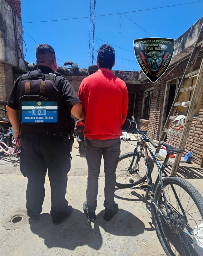 El sospechoso intentó huir en bicicleta desde Roldán hacia la ciudad de Funes, pero fue interceptado gracias a la coordinación entre el monitoreo y el Comando Radioeléctrico de ambas localidades.
