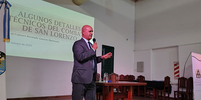 Al finallizar el encuentro el Cnel. Gastón Marmonti, del Instituto Nacional Sanmartiniano, ofreció una exposición detallada sobre “Algunos detalles técnicos sobre el Combate de San Lorenzo”.