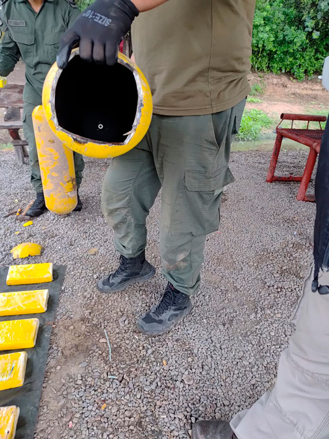 Luego de utilizar distintas herramientas, se extrajeron 42 “ladrillos” que sometidos a la prueba de campo Narcotest se confirmó la existencia de cocaína con un peso total de 44 kilos 184 gramos.