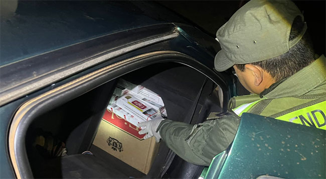 Continuando con la requisa, en presencia de testigos, los uniformados constataron un total de 5000 paquetes de cigarrillos de origen extranjero acondicionados dentro del habitáculo y del baúl, así como un arma de fuego carente de documentación.