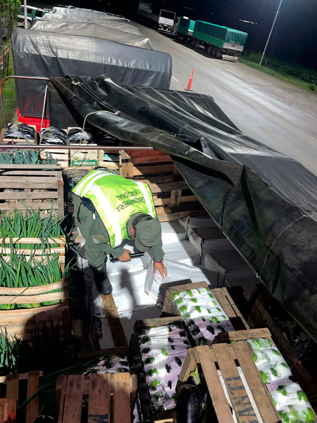 Ayer, a la altura del Peaje Devoto (Ruta Nacional N° 19, kilómetro 142) los gendarmes de la Sección Seguridad Vial “San Francisco” dependientes del Escuadrón de Seguridad Vial “Villa María”, controlaron un rodado que se dirigía hacia la capital provincial y, durante la inspección, los funcionarios hallaron entre la carga de verduras más de 40 cajas que contenían pescados de la especie sábalo en infracción a la Ley 22.375. El avalúo según facturación asciende a 3.800.000 pesos.