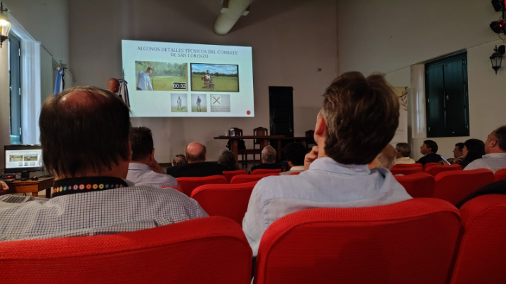 La primera parte de la exposición sumergió a los asistentes en la logística del enfrentamiento. Marmonti detalló cómo San Martín estructuró sus fuerzas, dividiendo a los Granaderos para ejecutar una maniobra de alas perfecta.