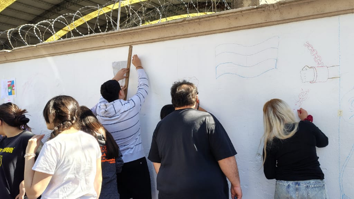 Entre pinceladas y manchas de pintura, las y los estudiantes también reflexionaron sobre lo que significa ese legado en el presente. Una de las alumnas comentó: “Nos tocó hacer un mural muy lindo. Estuvimos varias clases en Arte pensando cómo llevar las máximas a la actualidad, y eso fue lo más interesante”, mientras que otra agregó entre risas: “Hicimos muchos dibujos hasta que nos decidimos. Al final quedó algo que sentimos nuestro”.